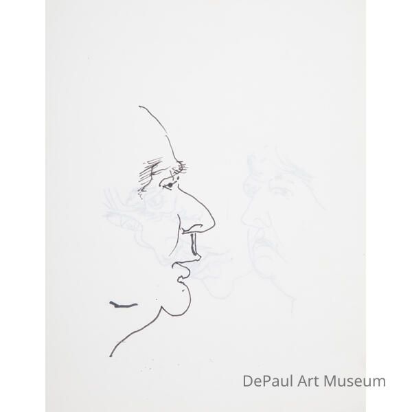 Left facing profile of an elderly man with his mouth slightly open done in black ink.Acquisition