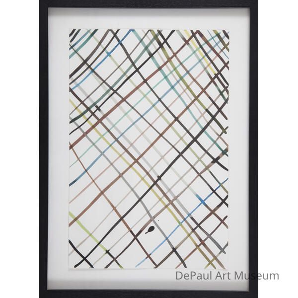 Criss crossing lines in brown, black, blue, and green watercolors.Artwork Details