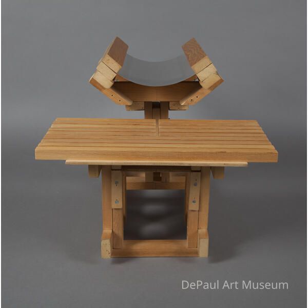 Untitled Bladen, Ronald 1986 structure of light-blond wood with a curved metal sheet