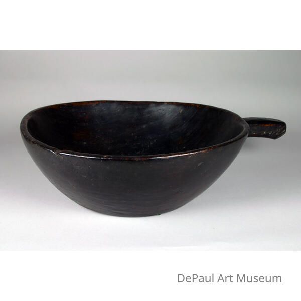Wooden bowl with a handle. No decoration.