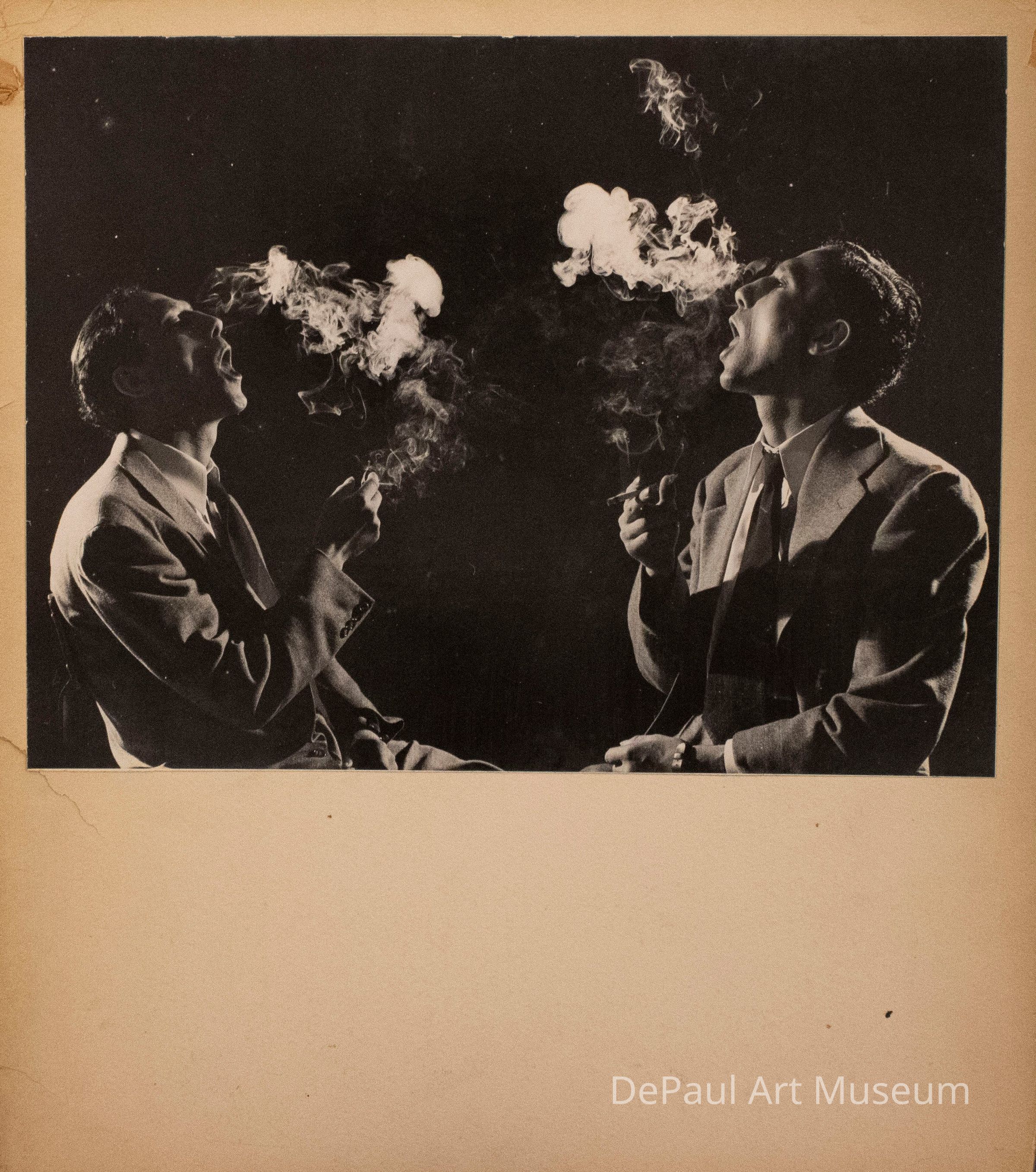 Untitled [portrait of two men blowing smoke]