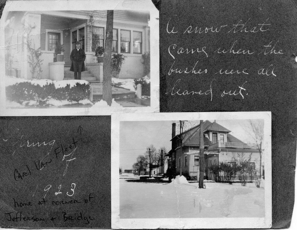 Carl VanFleet home at corner of Jefferson and Bridge Streets. - Maud VanFleet gave these to Freda Bollinger who gave them to Ken Coin in 1983.Acquisition