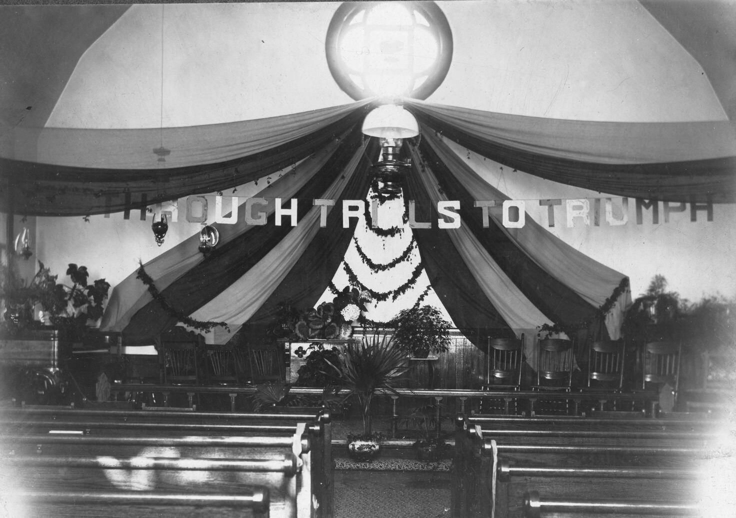 M. E. Church (2nd that burned in 1928) on N. Bridge Street during 1904 DeWitt High School graduation