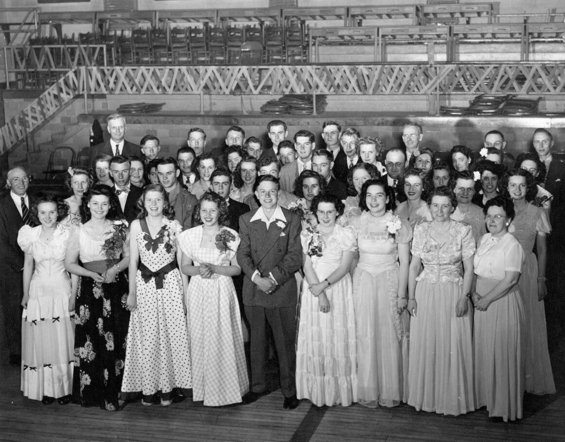 1946 or 1947 Jr.-Sr. prom. "Rainbow Inn". A copy with partial identification at Clinton County Historical Society Archives PI-132-906.