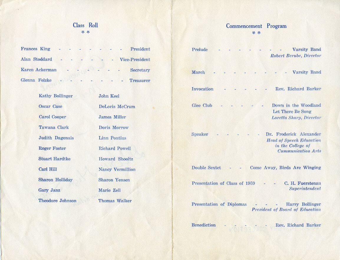 1959 Commencement Program