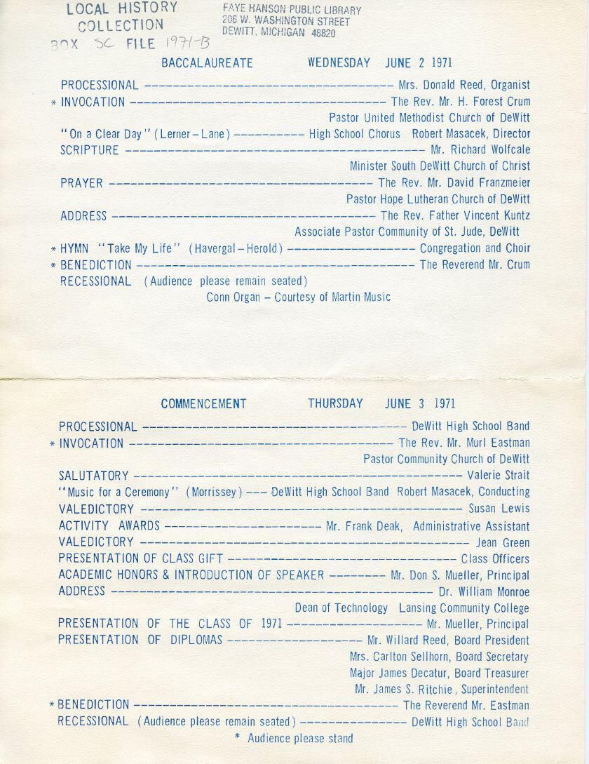 1971 Commencement-Baccalaureate Program