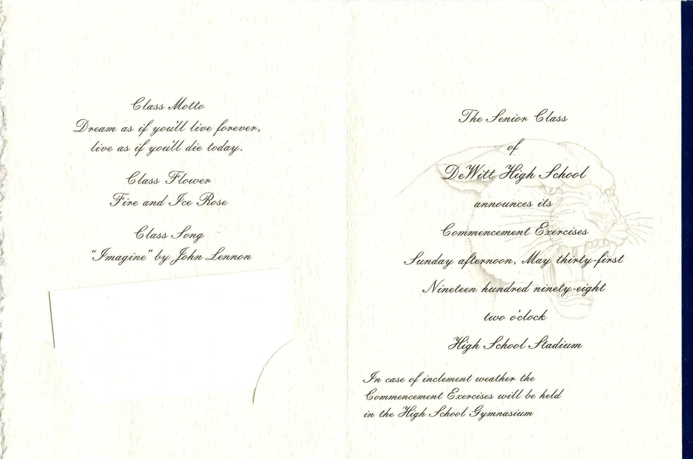 DeWitt High School 1998 graduation invitation