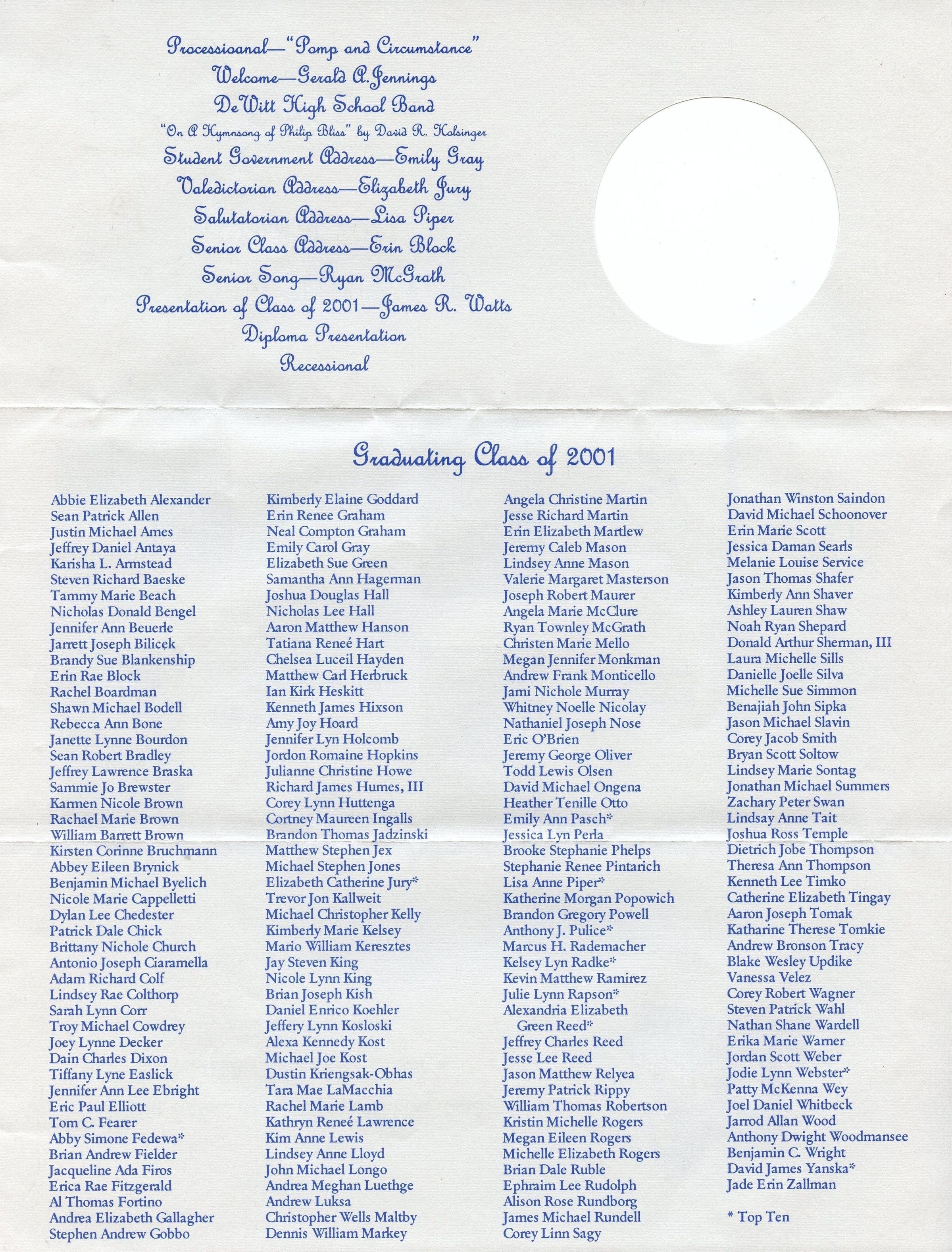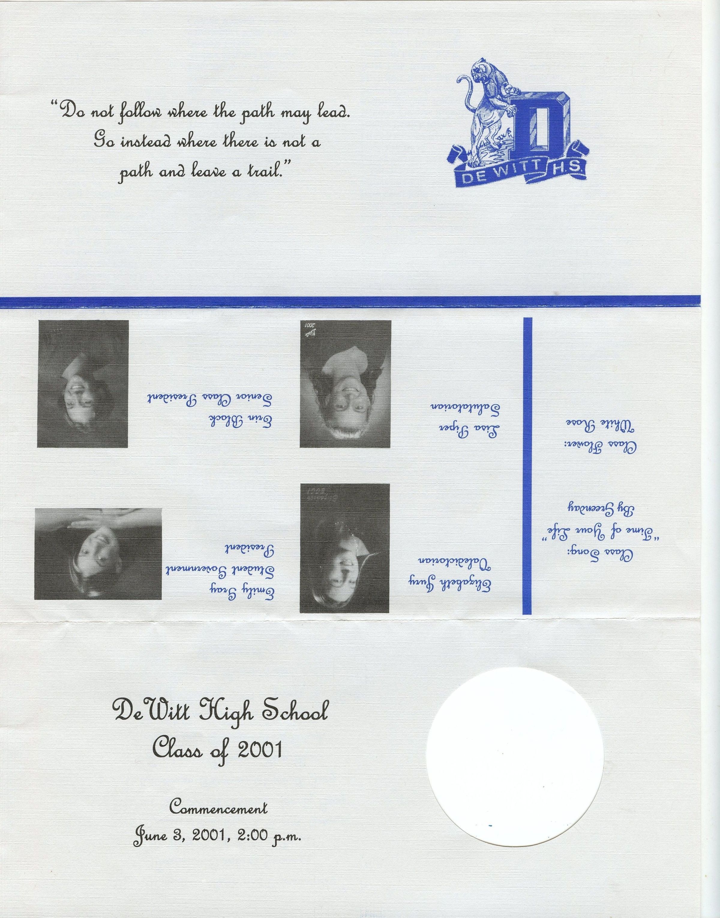 DeWitt High School 2001 Commencement Program