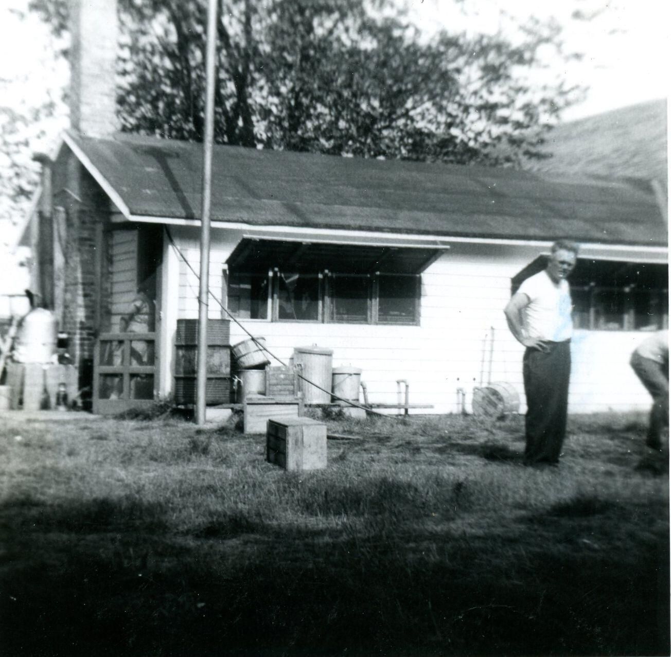 Camp Smith 4-H camp kitchen. K-202 shows Roscoe G. Smith. Taken July 26, 1941.
