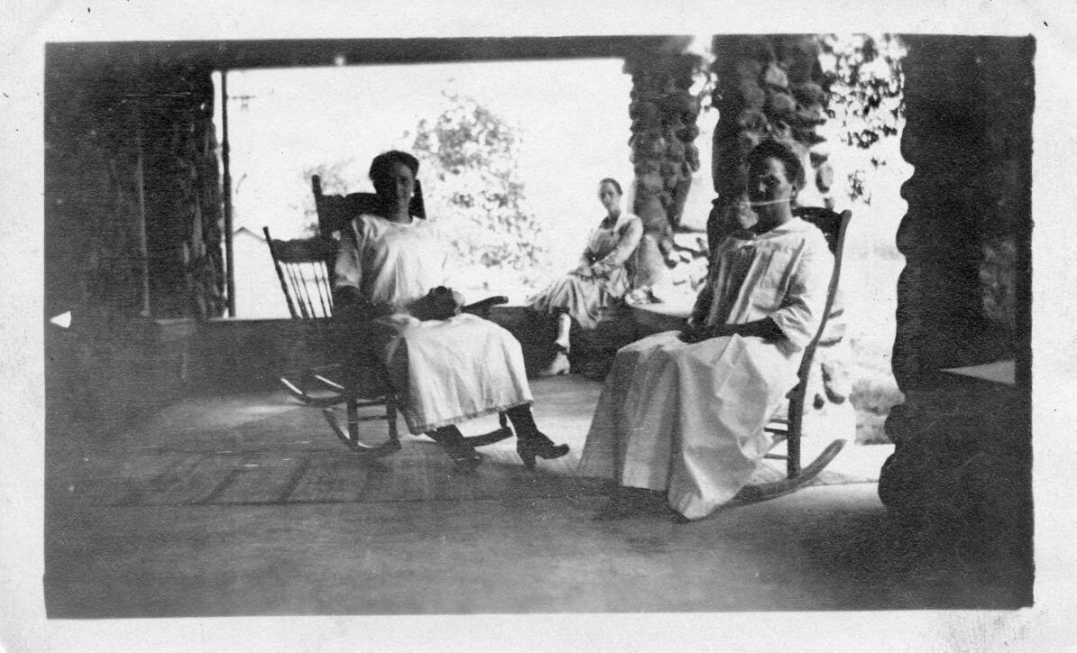 Unidentified on porch at 407 E. Main Street