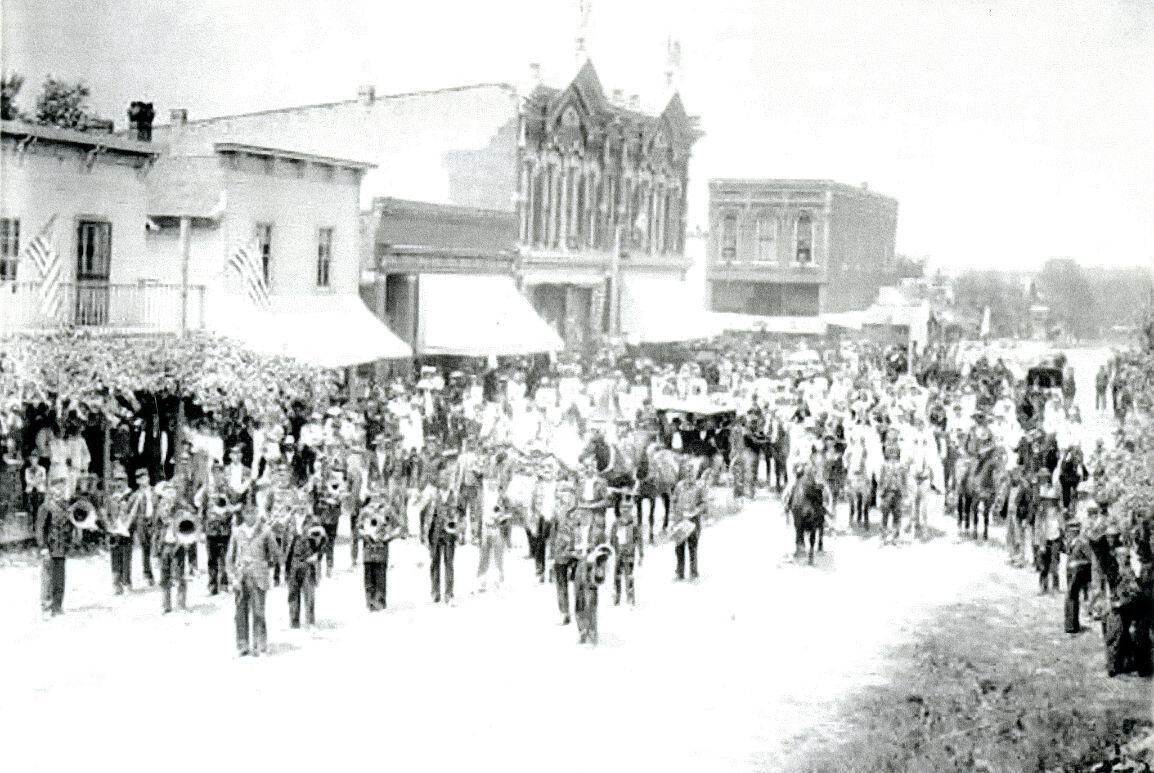 Copy of photo of Maple Rapids 4th of July parade, July 4, 1894.