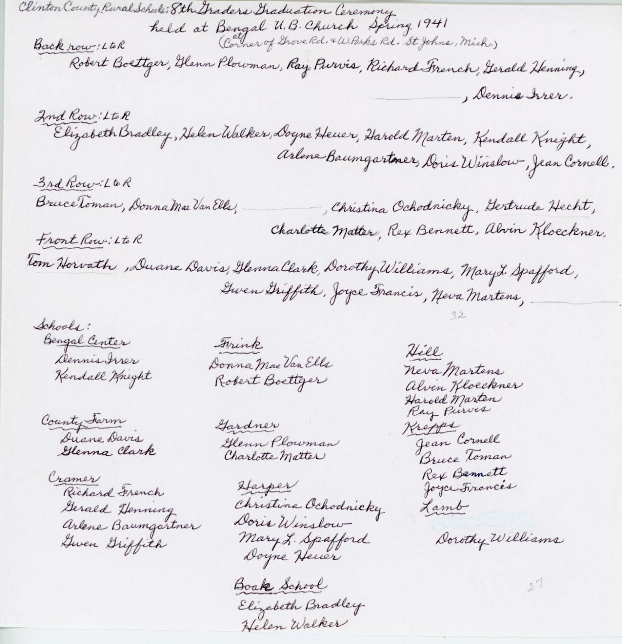 1941 rural school 8th grade graduation at Bengal U. B. Church.