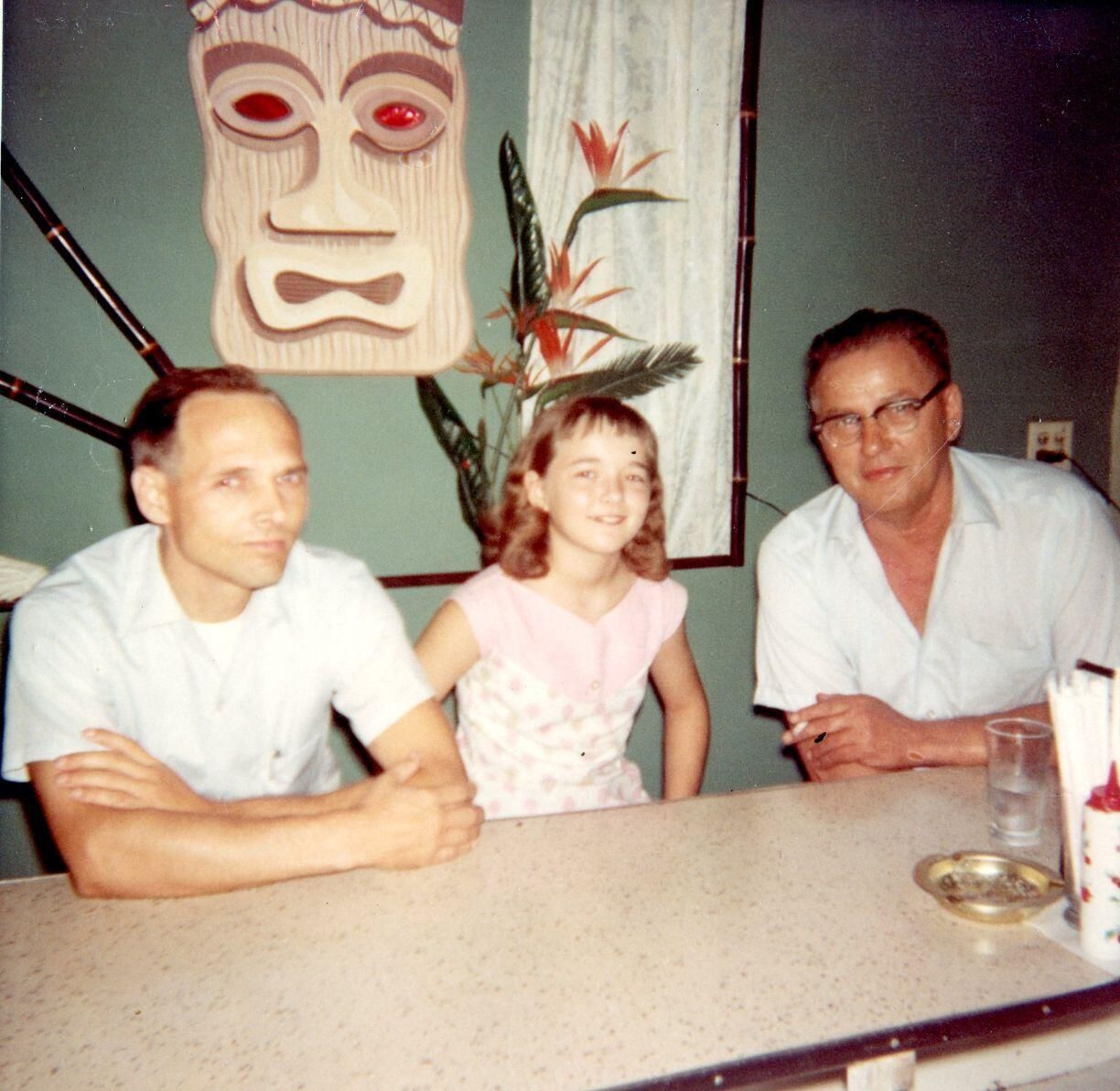 (l to r) Gerald Karber, Angela Karber, and Gerald Good at Aloha Drive-In, St. Johns. Copy of photo used in Clinton County History (1980) page 683.