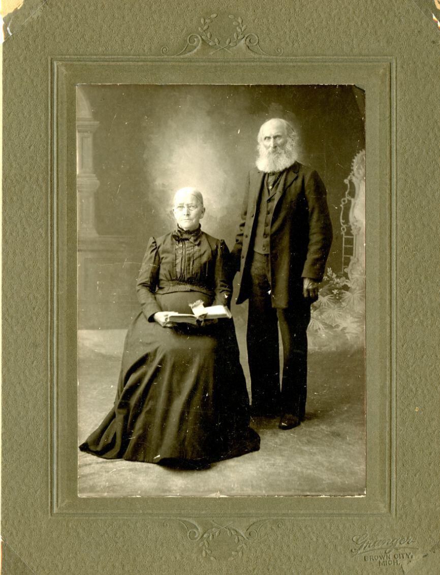 Margaret (Pomeroy) Dimond Babcock and Amos Babcock. Amos was early lumberman from Sanilac Co. Some of his tools are in the Michigan Lumber Museum.
