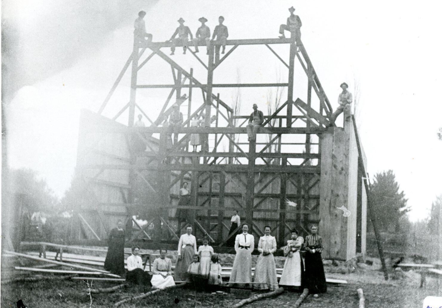 Barn raising on farm of A. B. Dexter at 1197 W. Hyde Road.