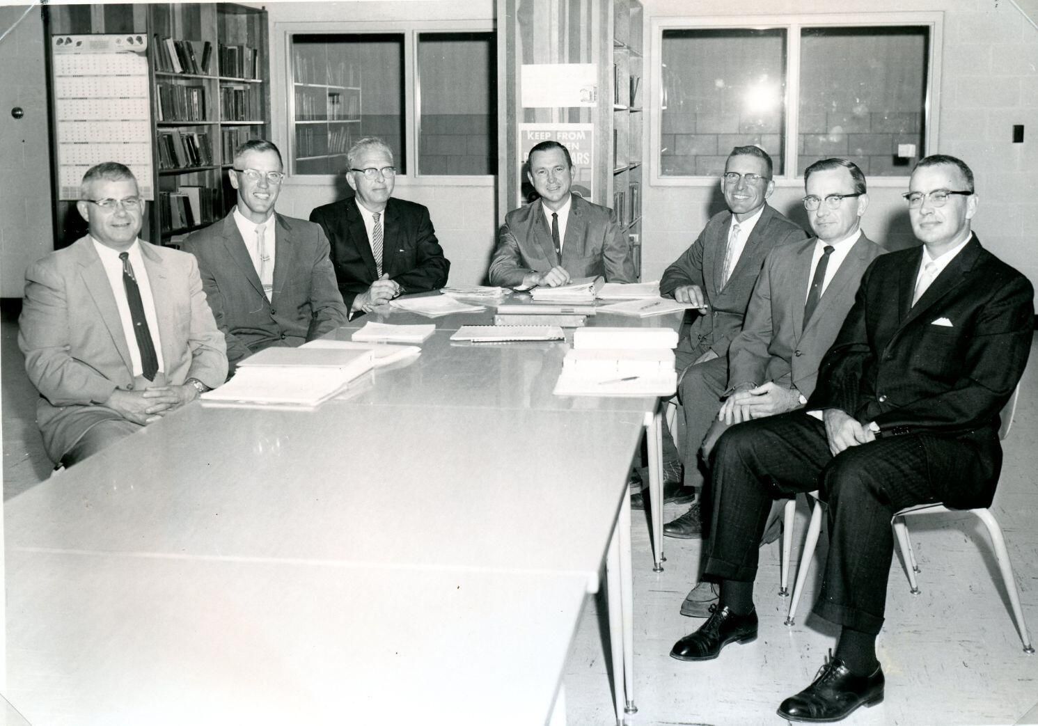 Bath school board for 1963-4. Gaylord Foote, Paul Seeger, Darwin Clise, Kenneth Munson, William Brook, Richard Ross, Richard Morrill.