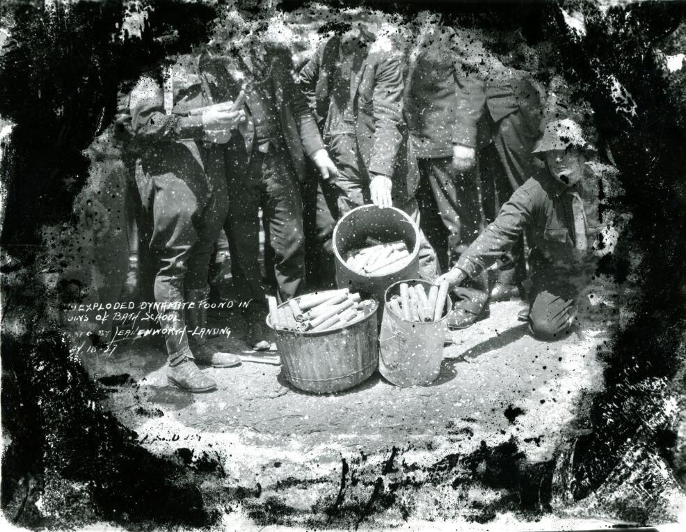 Unexploded dynamite found in Bath School. May 18, 1927. Photo by Leavenworth, Lansing, Michigan
