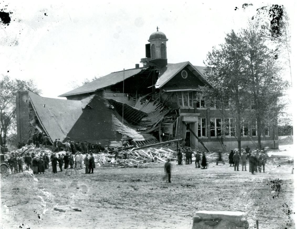 Bath School after the blast. Photo by Leavenworth, Lansing, Michigan