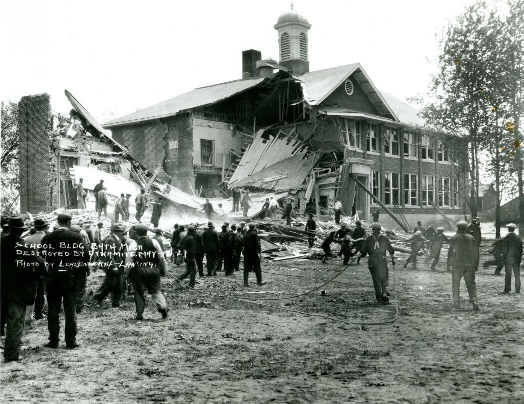 School building after the blast. Photo by Leavenworth, Lansing, Michigan