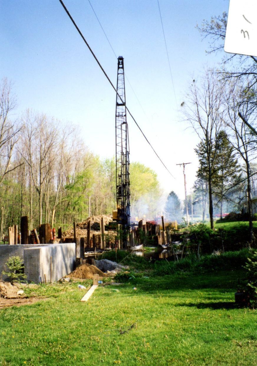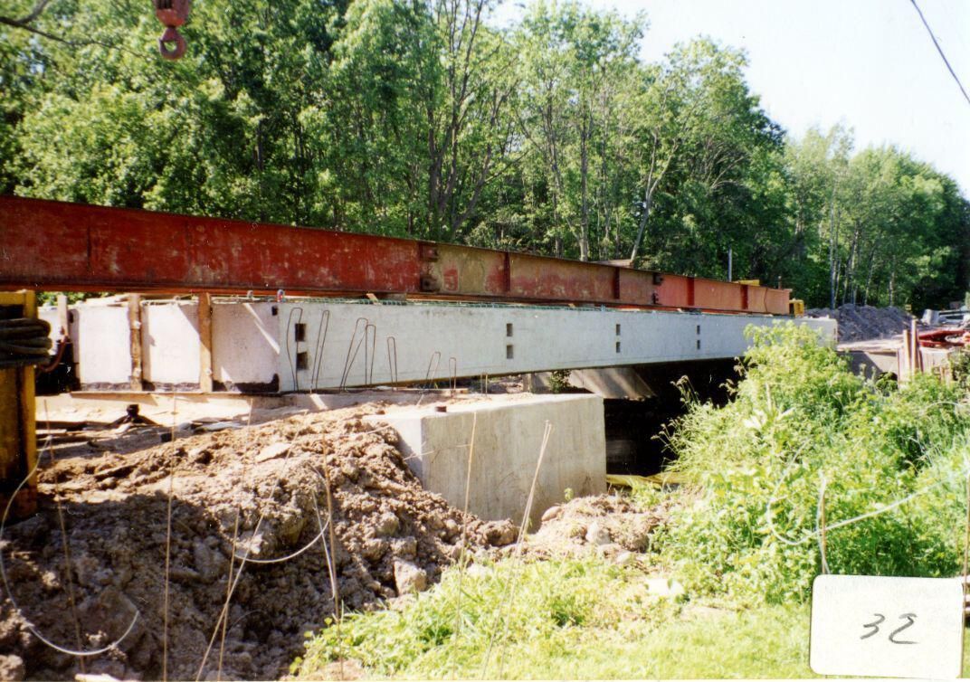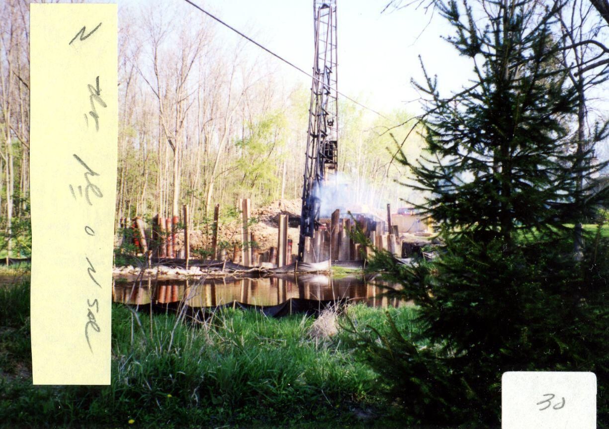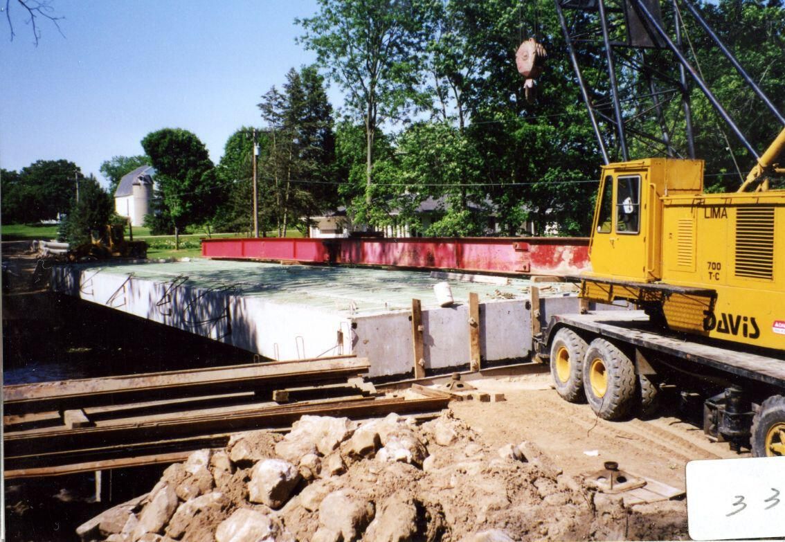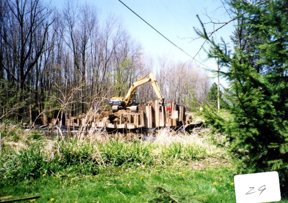 Bauer Road Bridge, 2000. Building coffer dam, driving piling on N side, beam for setting concrete roadway.