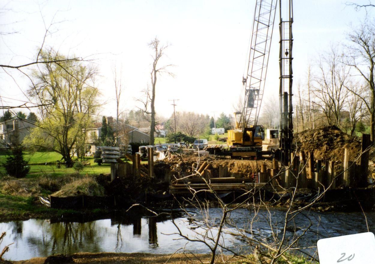 Bauer Road Bridge, 2000. Driving Pilings and filling support forms.