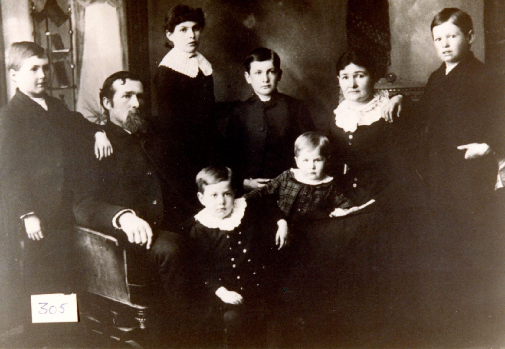 Frank Howard Beck, John A. Beck, Martha Beck, Gilbert Beck, Mary Jane (Aultman) Beck, Oliver Beck, (in front) George Roswell Beck, Guy Edward Beck. copy