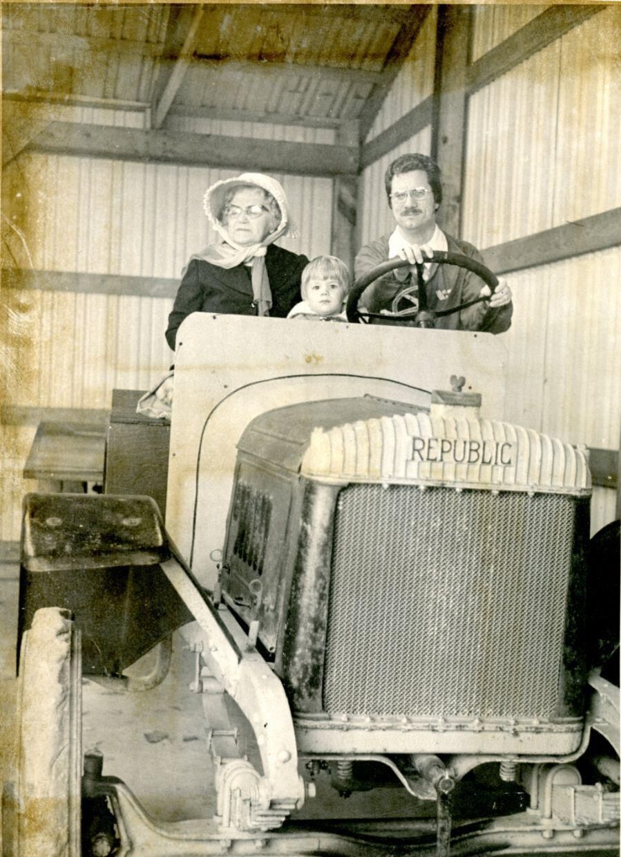 HIla Bross, John Speck and his son Matt Speck in Roy Davis' Republic truck, 1976.