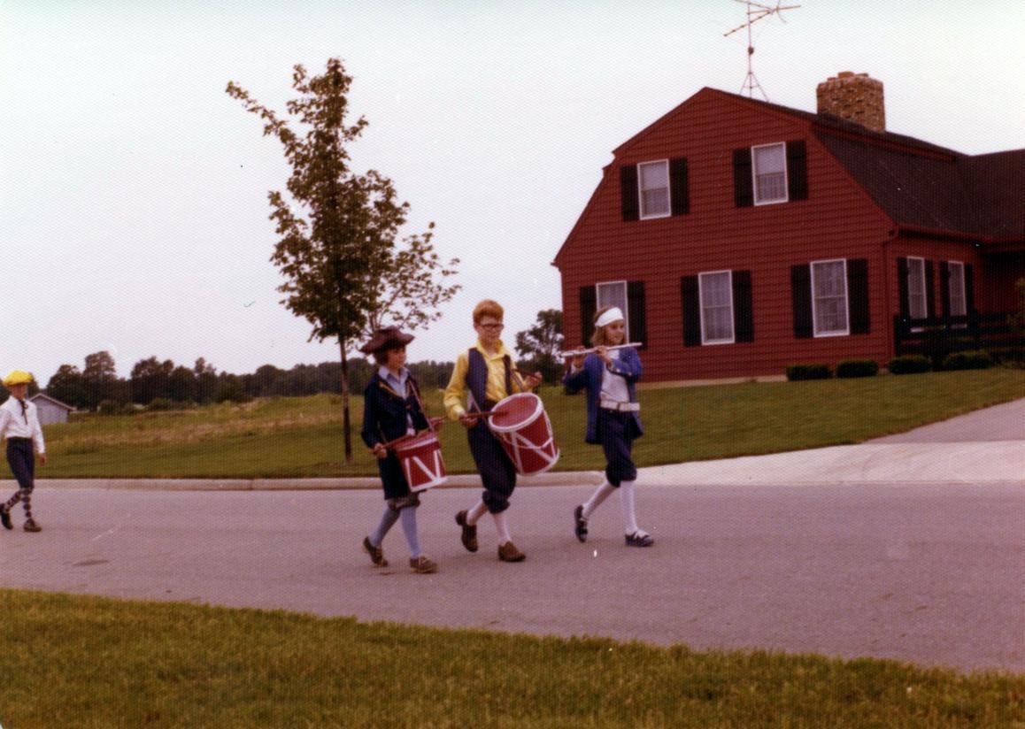 July 3, 1976, parade. Spirit of '76 featuring the McGovney boys (Gary & ?) and Shelly Pearson.