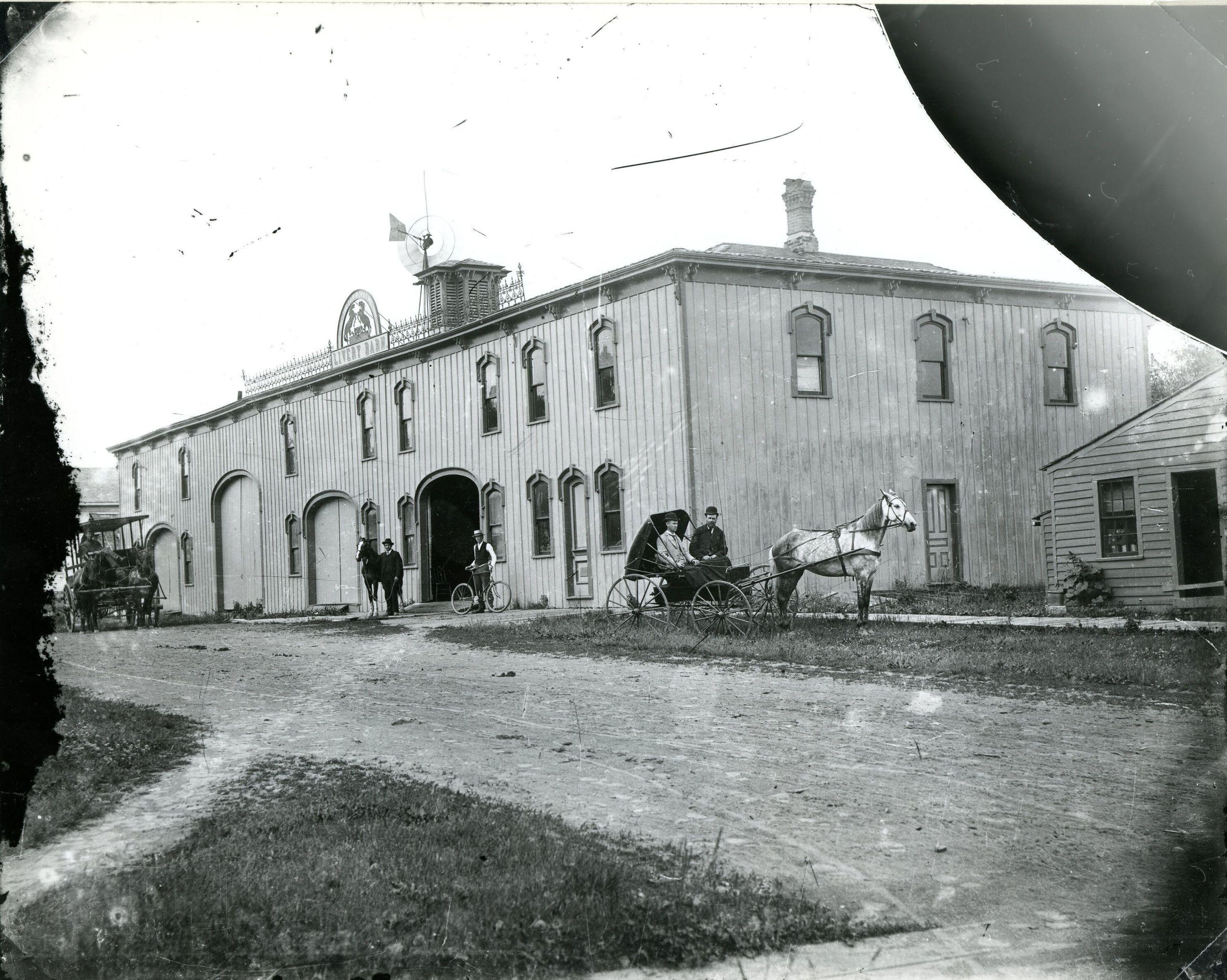 George R. Bliss Livery Barn, Maple Rapids, Michigan. Building was on the west side of Franklin Street between Washington and Adelaide Streets.