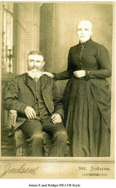 James and Bridget (Heath) Boyle. Also pictured is Mary Margaret (Duinlouis) Heath, mother of Bridget. Photocopies from Boyle family history.