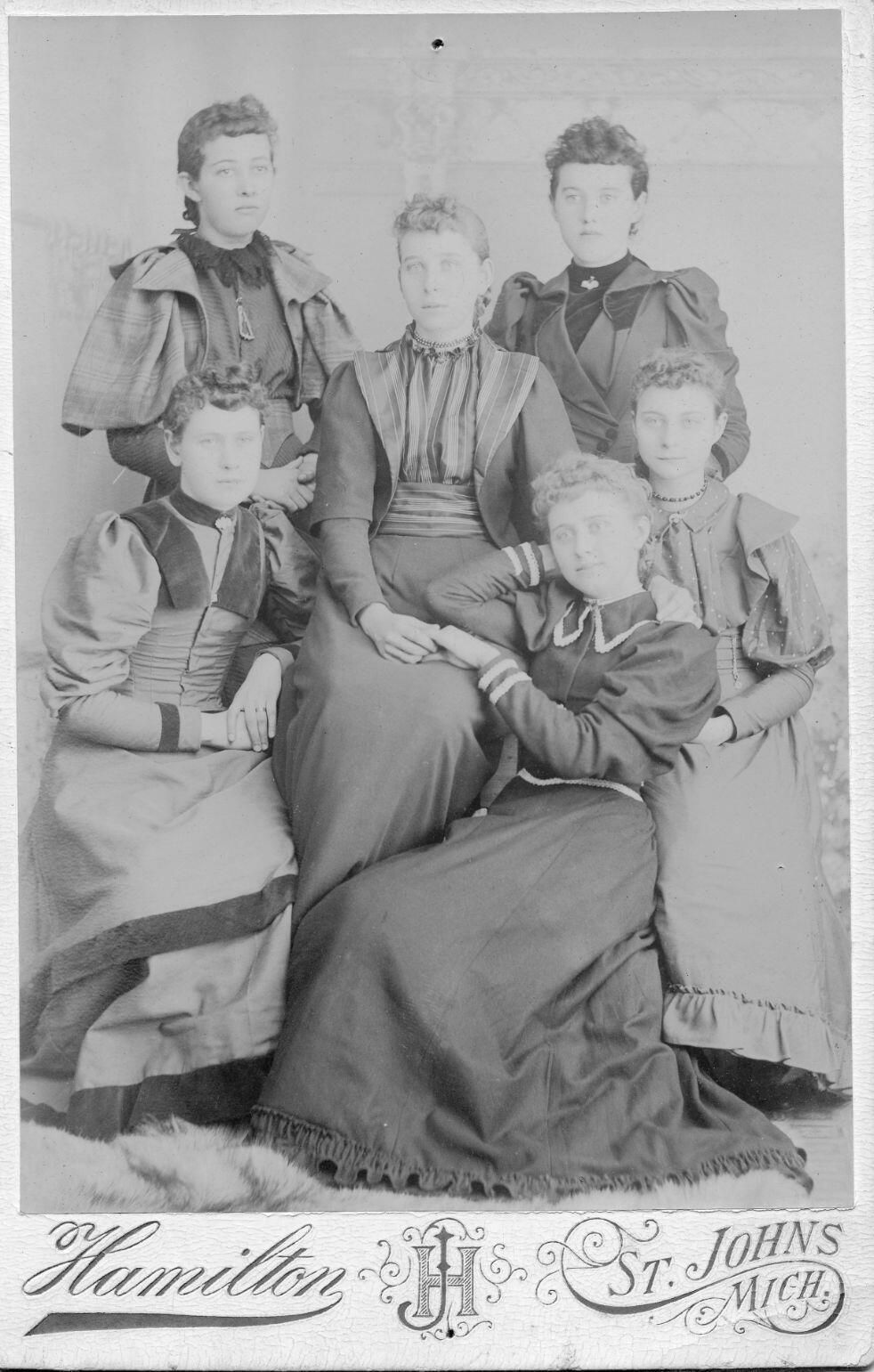 (LtoR) (top row) Floy Whittaker Brinkerhoff, Otie Bedell, Agnes Pike Millen Steinhardt Forbes (bottom row) Ella Reed Blizzard, Bertha Knapp Smith, Edna Randall Pike