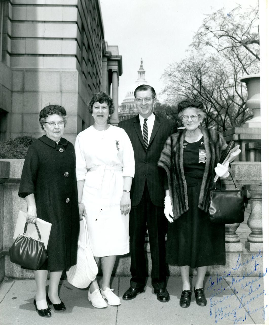 Mrs. Clyde Wilcox, Maralyse Brooks, James Harvey (congressman), and Goldie (Palmer) Brooks. Taken at Washington, D. C.