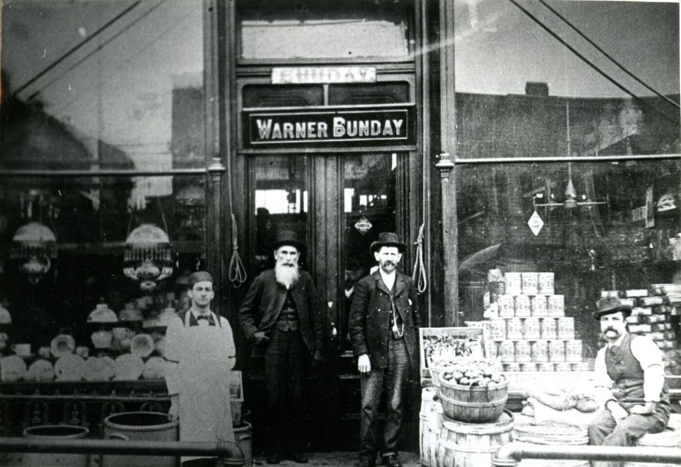 Warner Bunday owner of Bunday's Grocery was the first to occupy the MacKinnon Store building in St. Johns. Copy of photo used in Clinton County History (1980) page 679.
