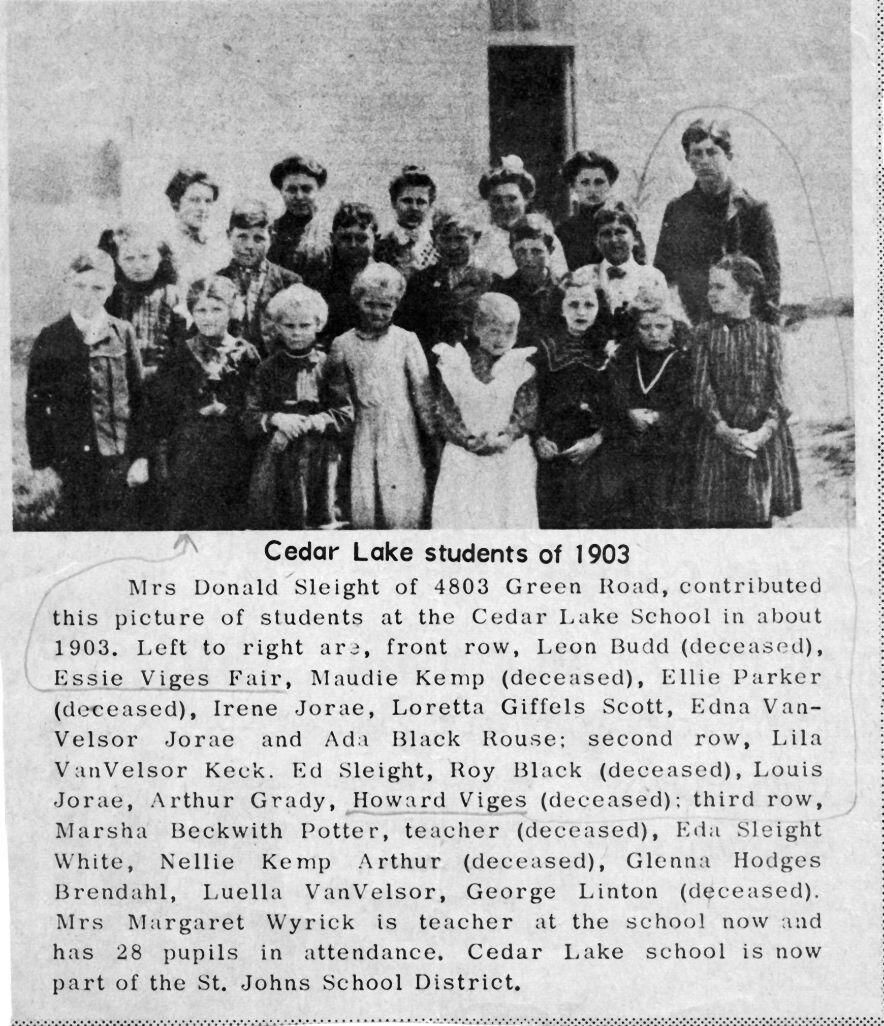 Cedar Lake School c1903. Newspaper.