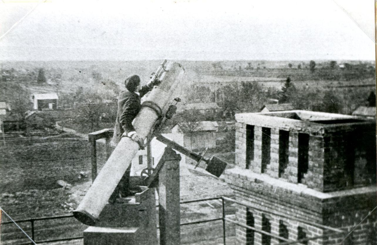 A telescope was mounted on the roof of Central School in the early 1900's and used by high school science classes. Copy of photo used in Clinton County History (1980) page 663.