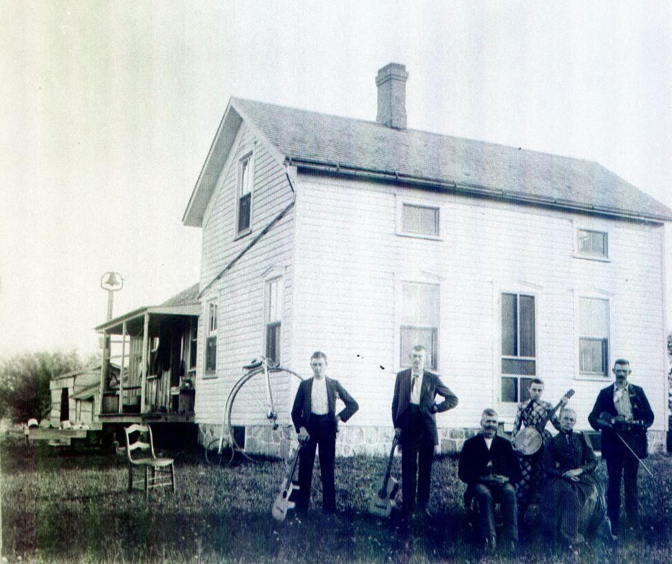 Christopher and Charlotte Chant house on Jason Road, west of Airport Road, Riley Township c1900. Seated are Christopher and Charlotte. Standing are Archie, Arthur, Daisy, and Charles. copy