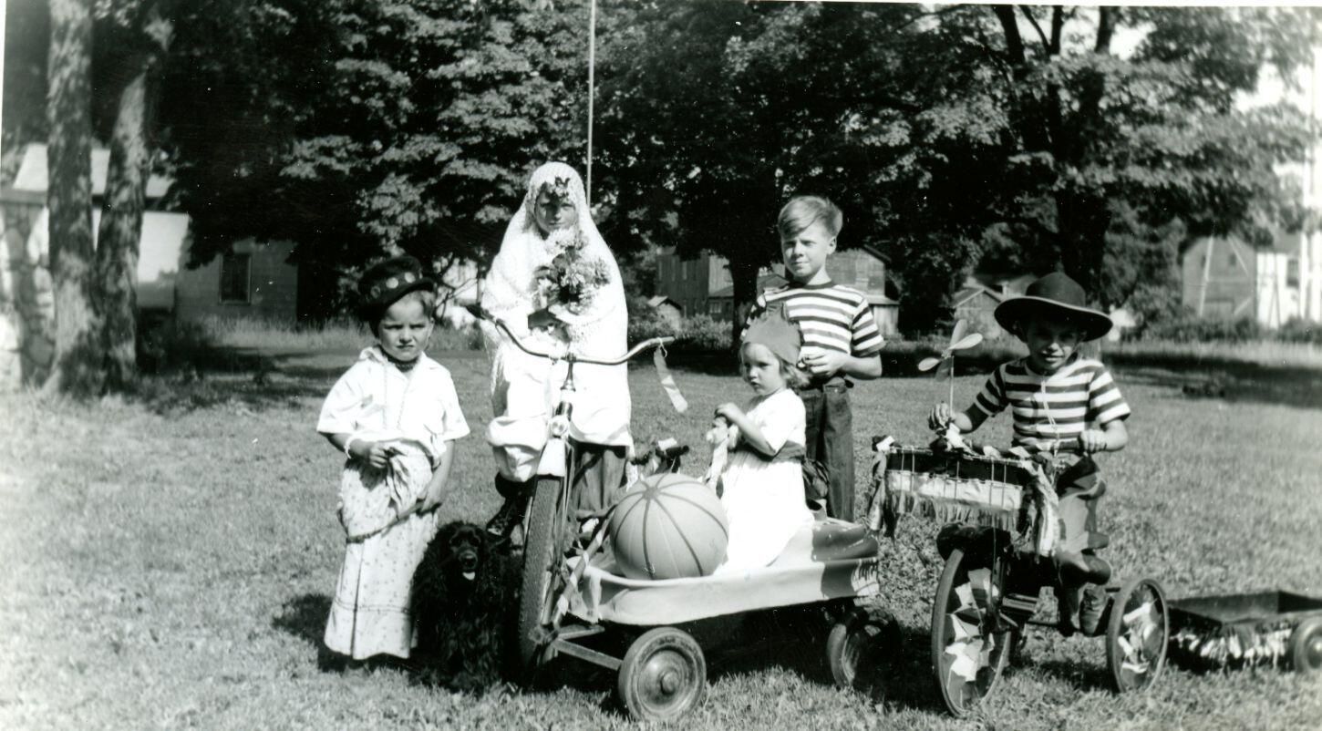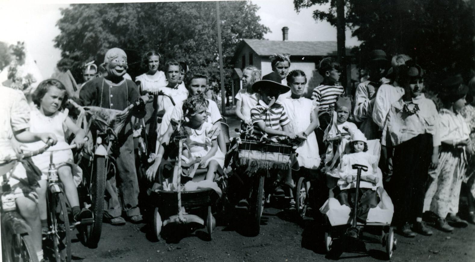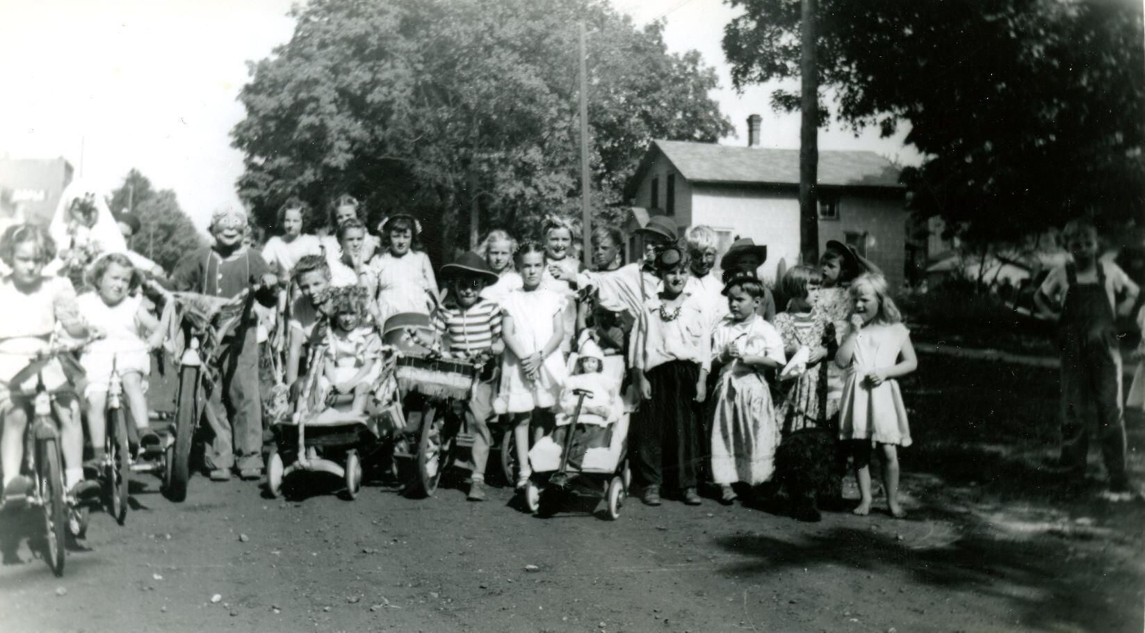 Costumed children in parade. Probably Maple Rapids.