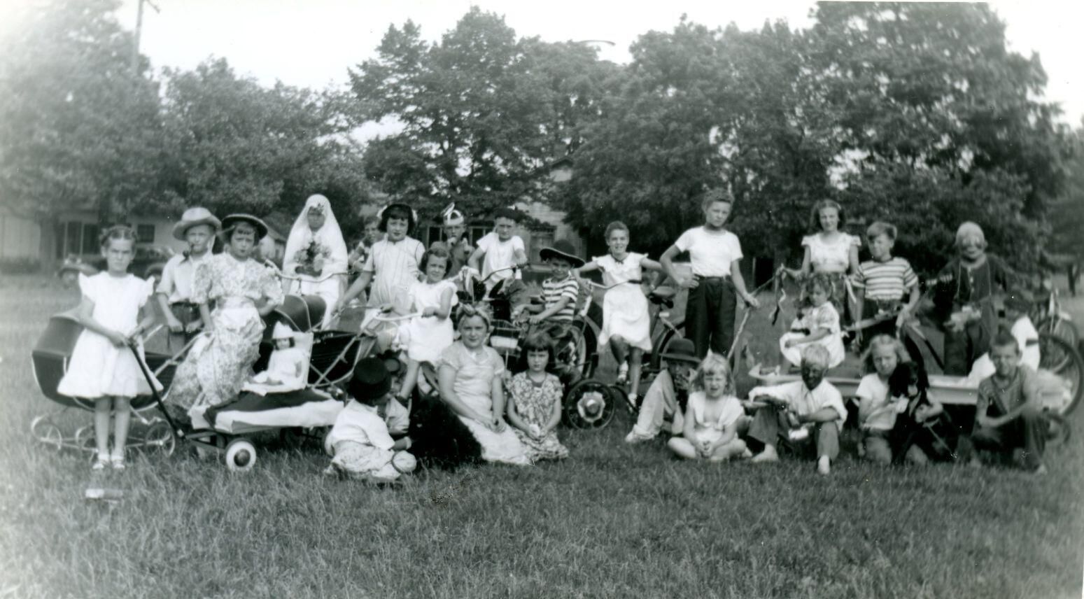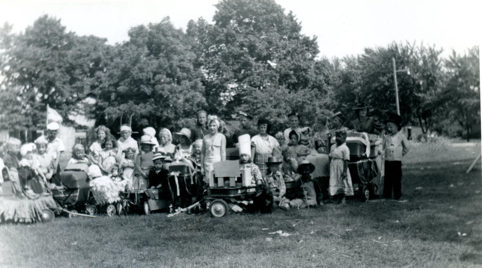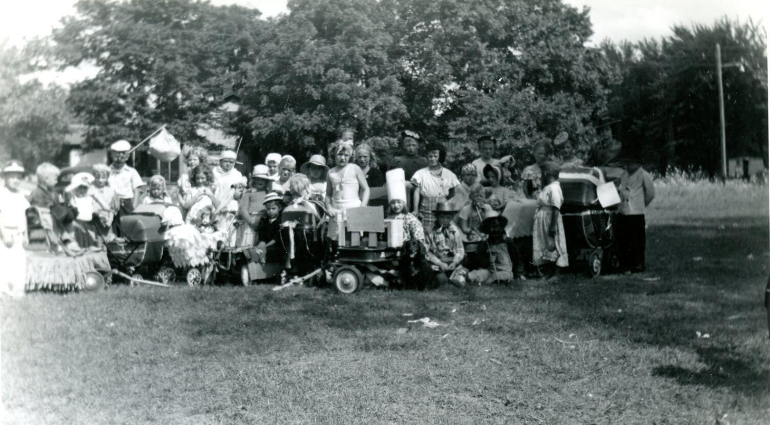 Costumed children in parade. Probably Maple Rapids.