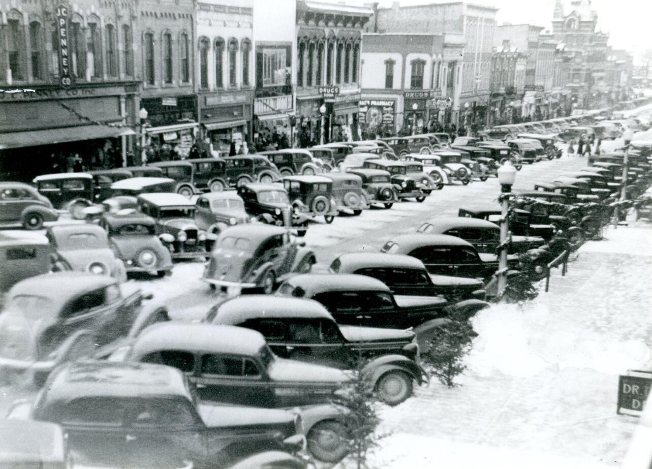 c1940 Christmas shopping on Clinton Avenue, St. Johns. Copy of photo used in Clinton County History (1980) page 676.