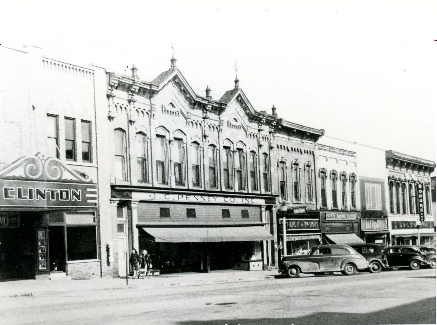 West side of first block of Clinton Avenue, St. Johns in the 1940's. Copy of photo used in Clinton County History (1980) page 676.