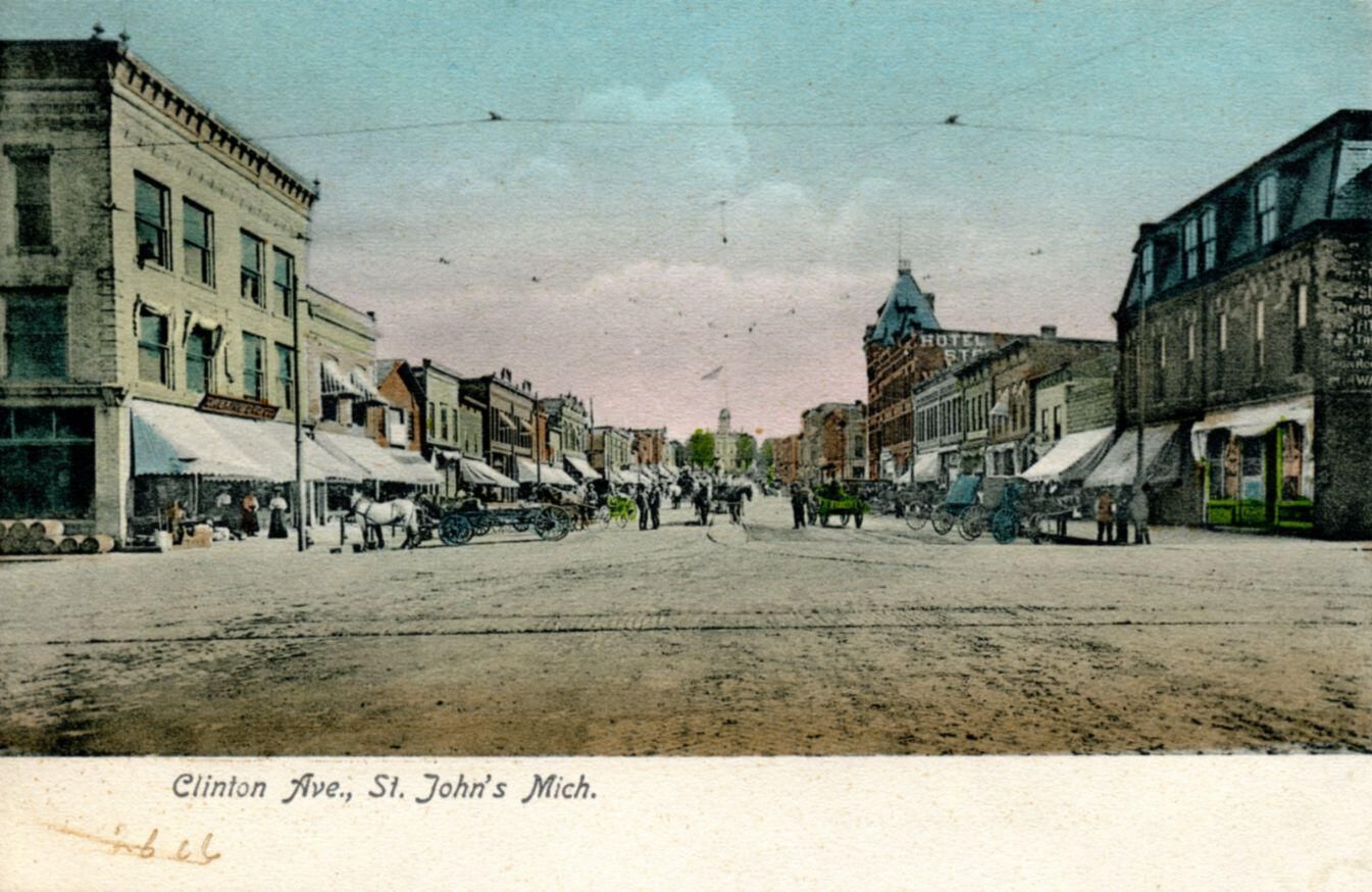 Postcard of Clinton Avenue, looking south from railroad, St. Johns.