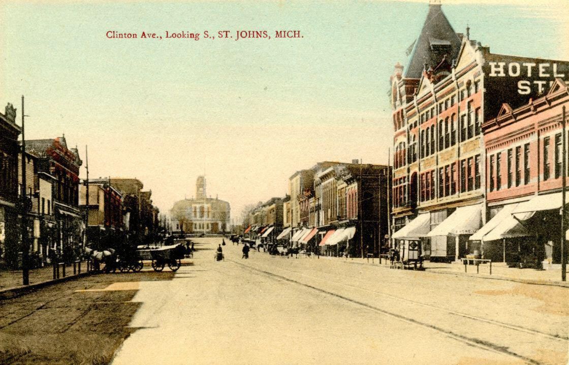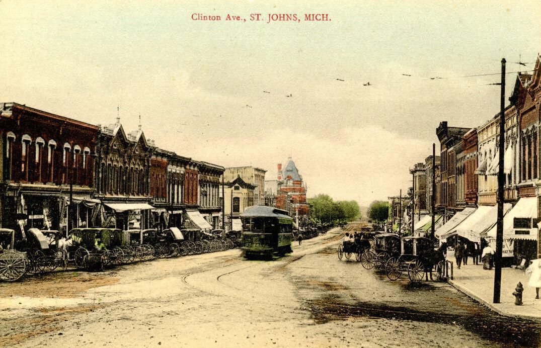 Postcards of Clinton Avenue c1early 1900's with Interurban. J113 is looking north from in front of courthouse square. J114 is looking south from Railroad Street.