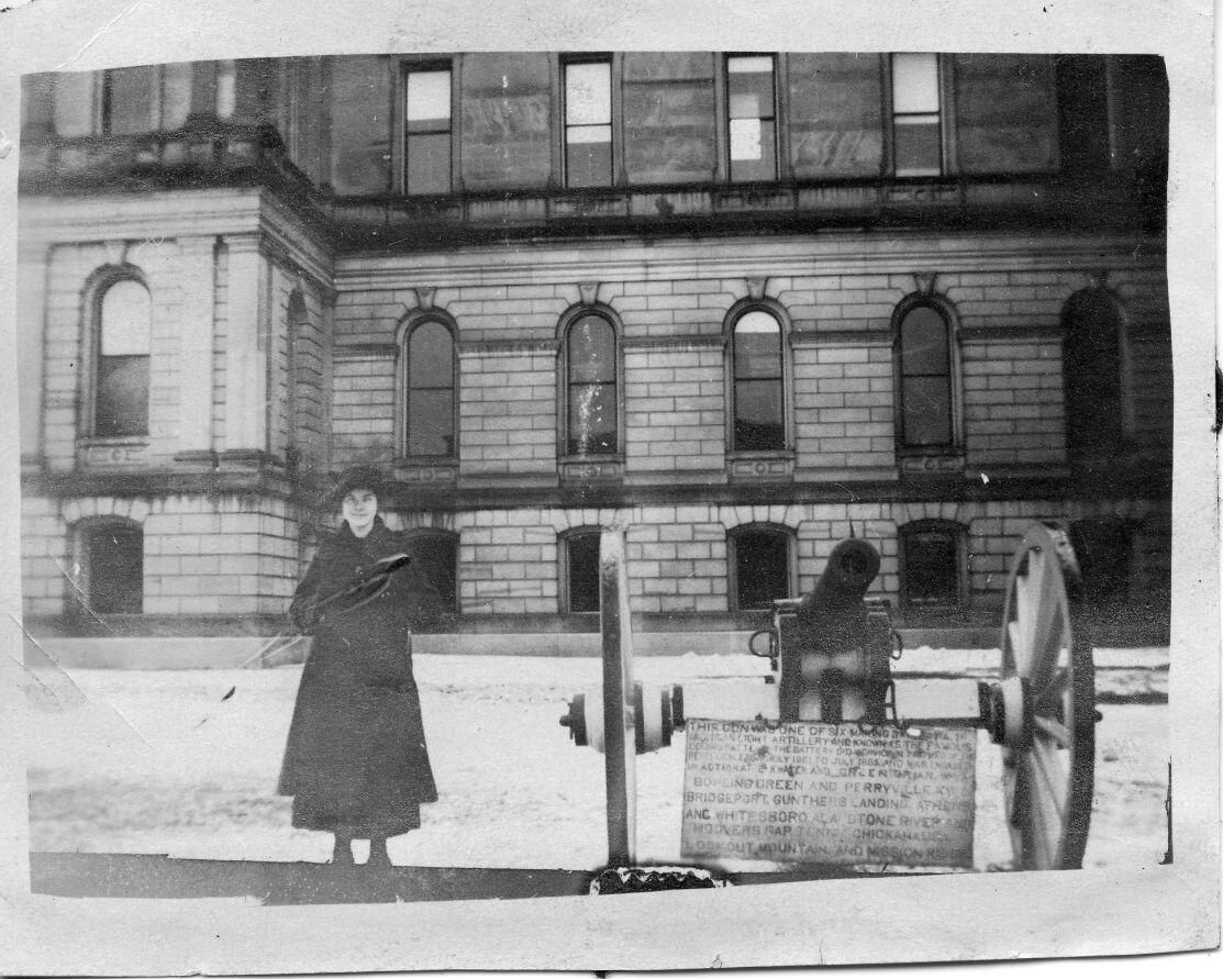 Unidentified in front of Clinton County Courthouse