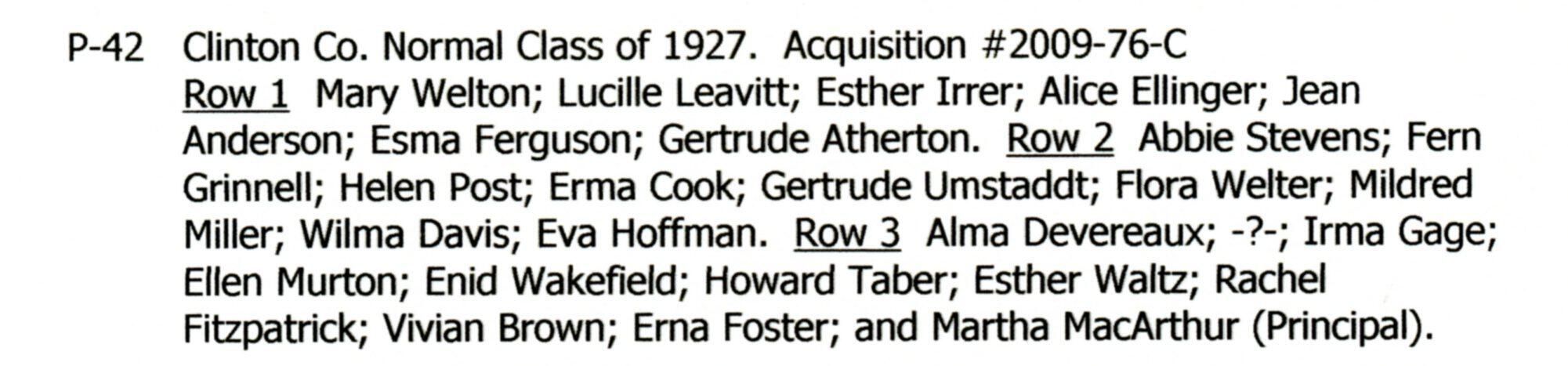 Clinton County Normal class of 1927.