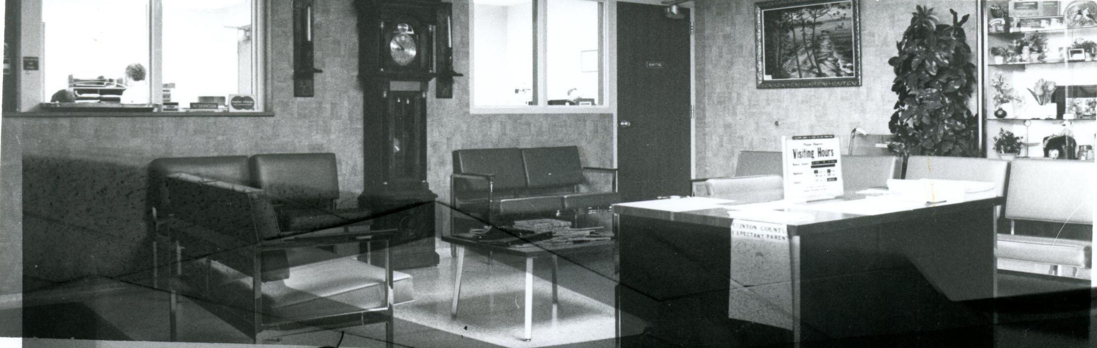 Clinton Memorial Hospital 1st floor waiting room. August 1980. Copy of photo used in Clinton County History (1980) page 601.
