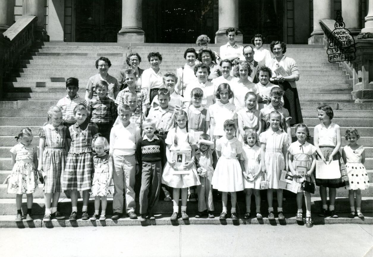 School group (Colony School?) 1957 visit to state Capitol.