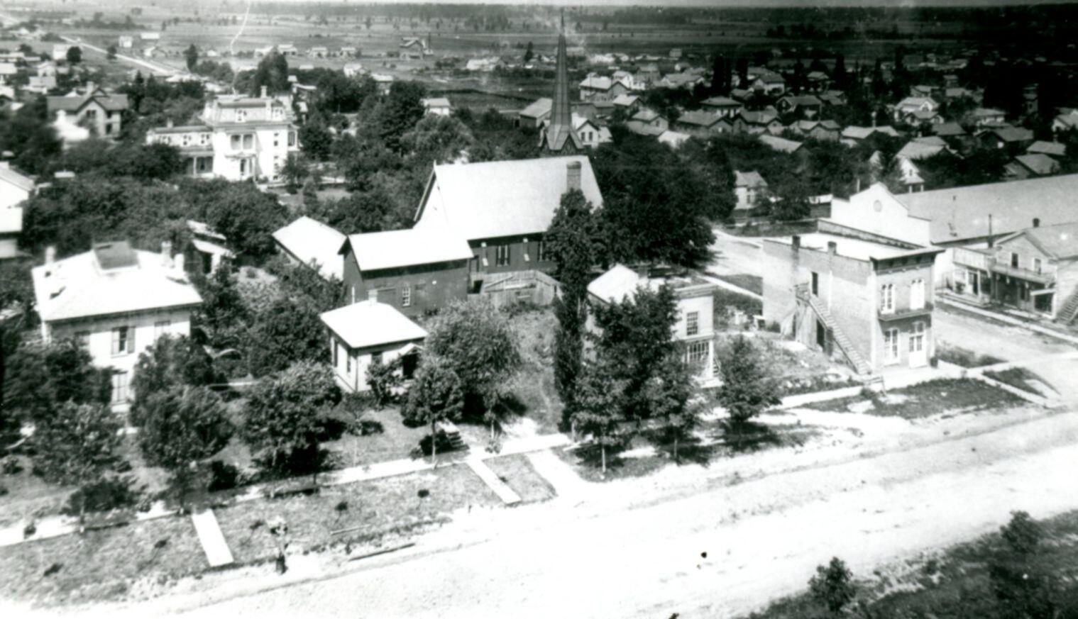 Site at 205 W. State before and after the construction of the Congregational Church in 1901. copies