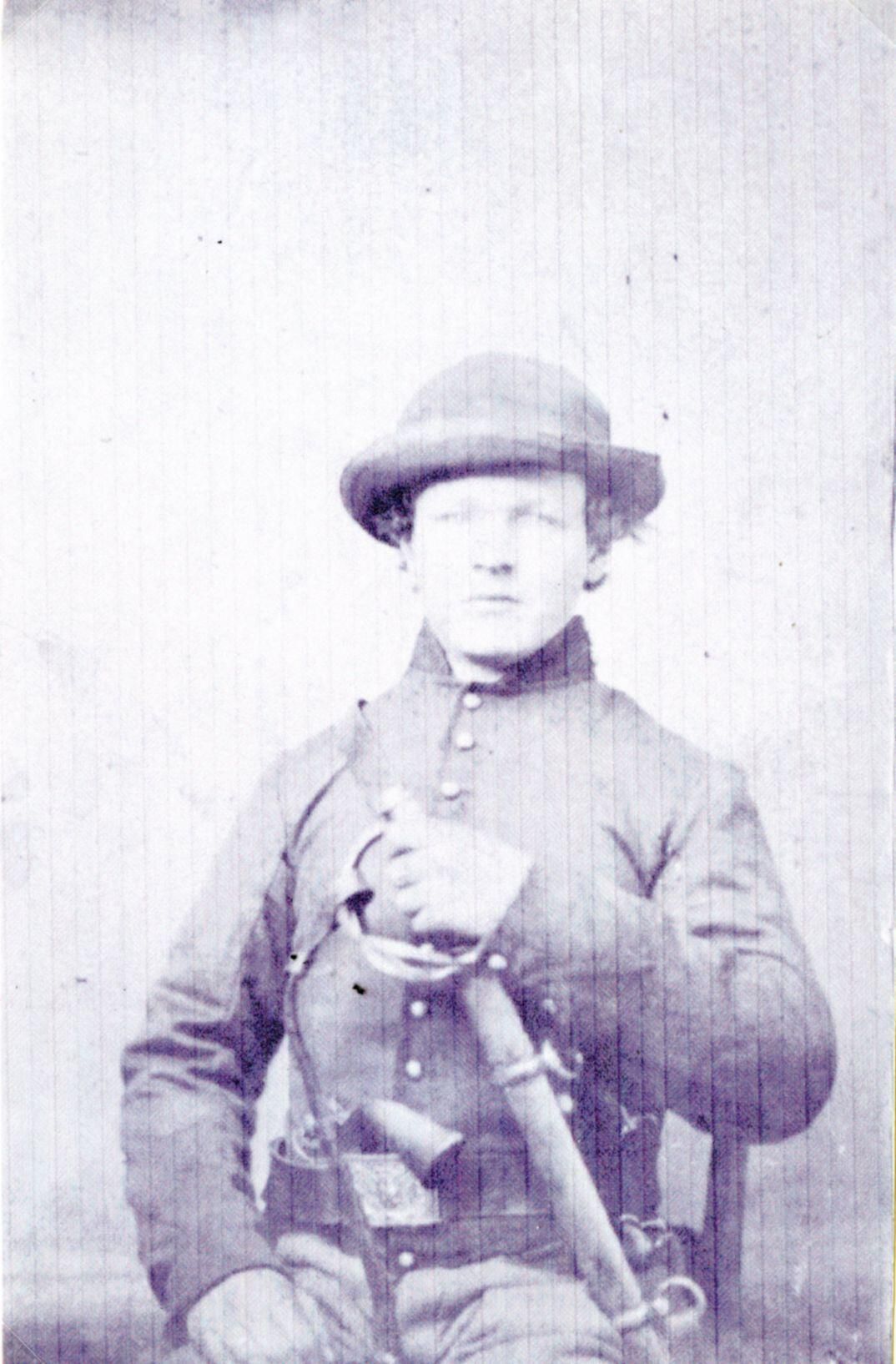 John F. Connell, Co G 5th Cavalry in Civil War. Enlisted in Riley Township. Photocopy