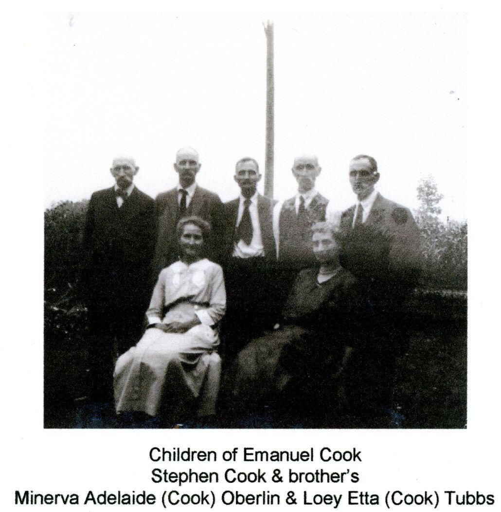 Children of Emanuel and Eliza (Harris) Cook. Stephen W. Cook and 4 of his brother. Sisters Minerva A. (Cook) Oberlin and Loey E. (Cook) Tubbs. 2nd photo is Emanuel Cook and unidentified men and woman. Hier family history.