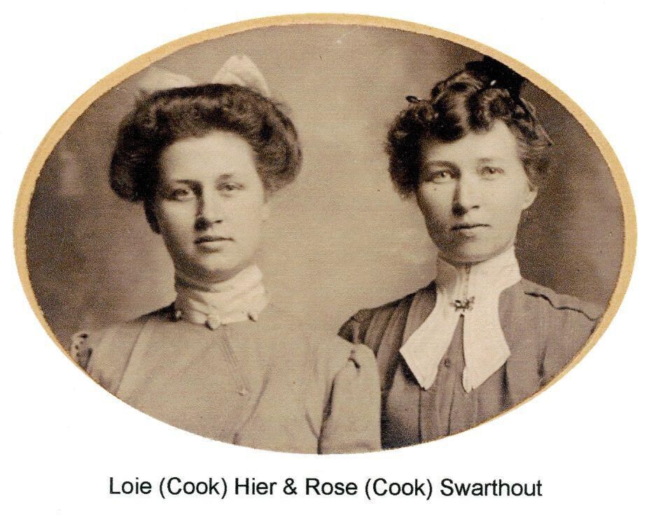 Loie (Cook) Hier and Rose (Cook) Swarthout. Daughters of Stephen W. and Sarah E. (Bennett) Cook. Hier family history.